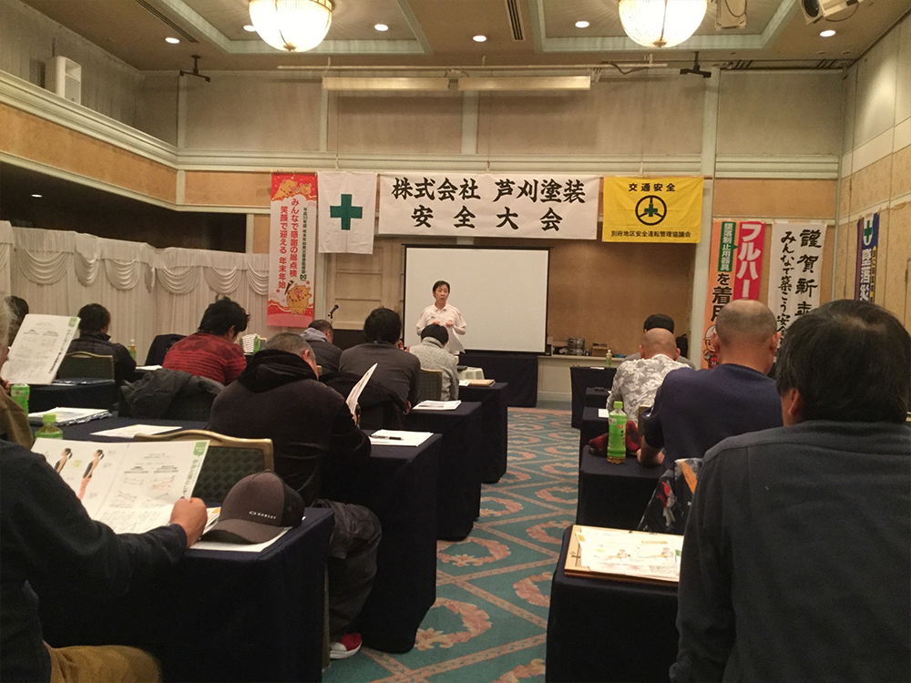 事故や災害を防ぎ、社員の安全衛生にかかわる知識を深め、その意識を醸成するために安全大会を実施しています。