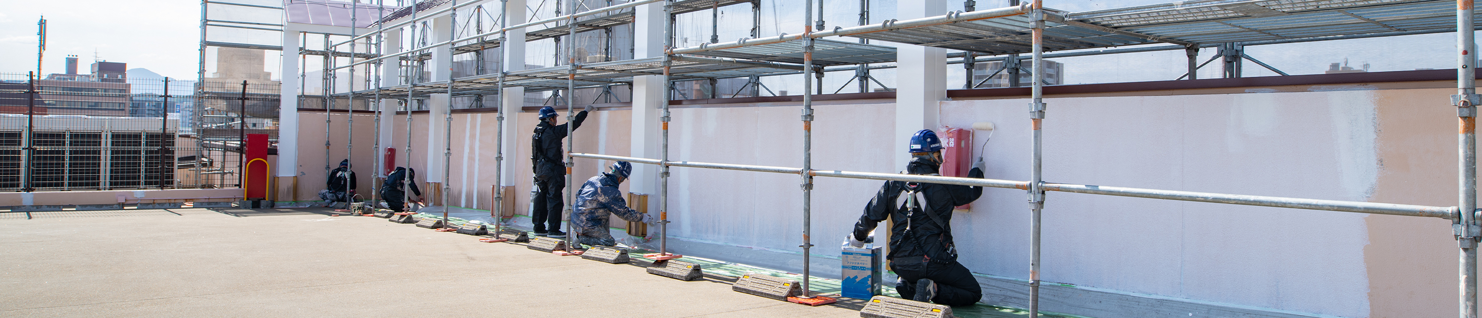 高圧洗浄後、表面の研磨により汚れを除去。専用プライマーを塗って防水します。