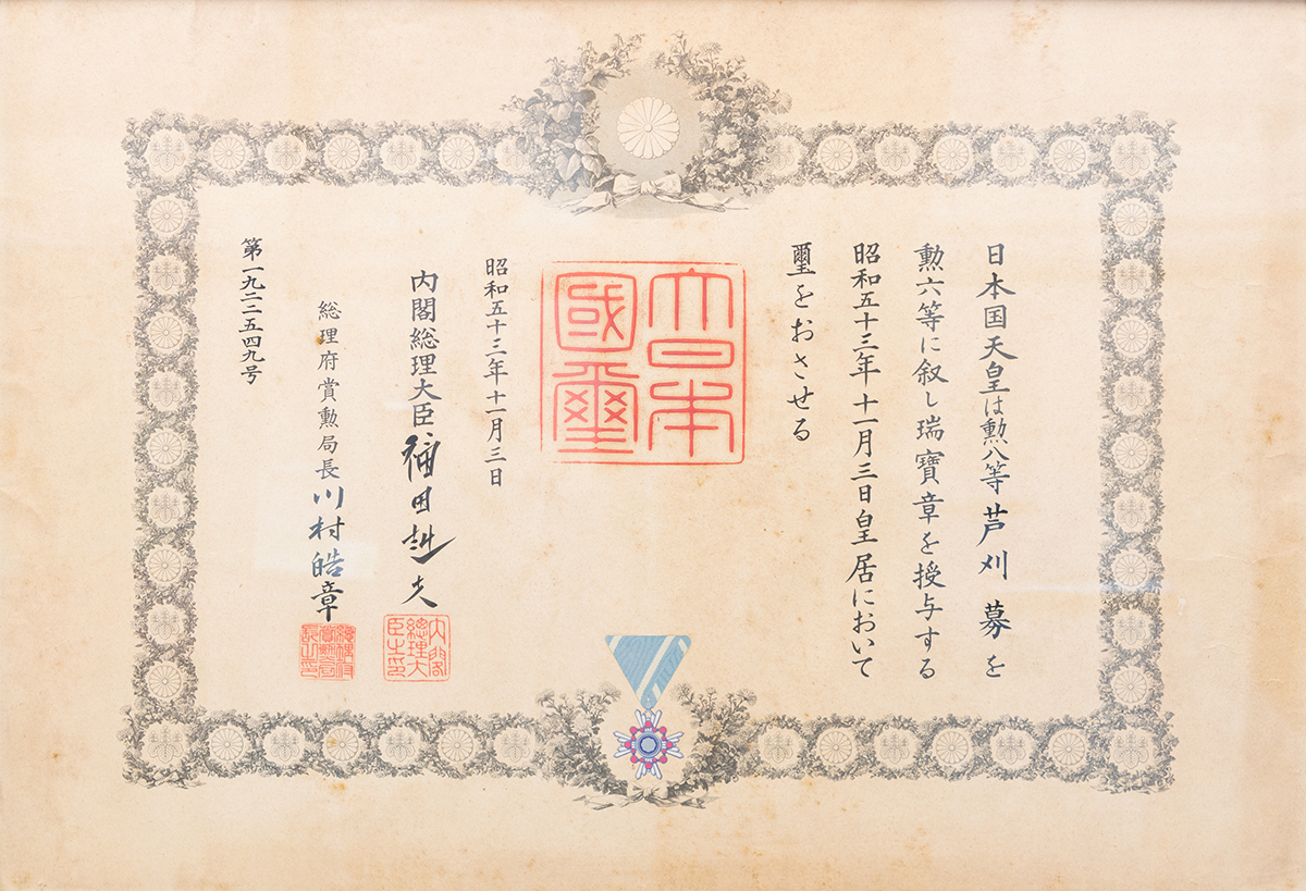 | 昭和53年11月3日 | 芦刈 募 勲六等瑞宝章授章 |