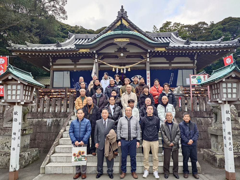 現場での安全を祈願し、八幡朝見神社、八幡竈門神社、火男火売神社にて三社参りを実施しています。