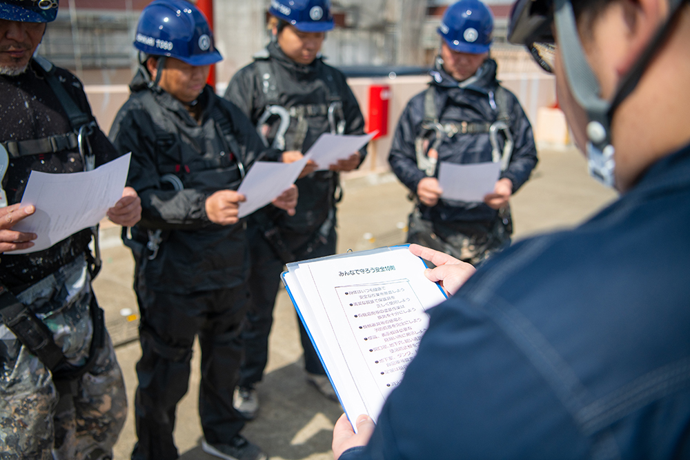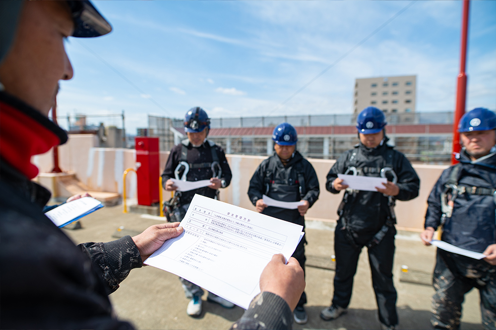 塗装防水作業は高所作業など危険な場所での施工もあり、徹底した安全管理を行うため、「安全管理方針」を設定し、事故の無い安全な現場管理に取り組みます。